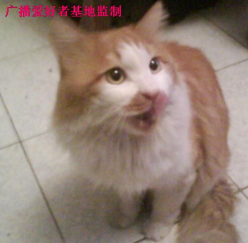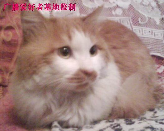 特征:黄白猫,大眼睛,黑眼球,胡须很长,嘴角有个小痦子。